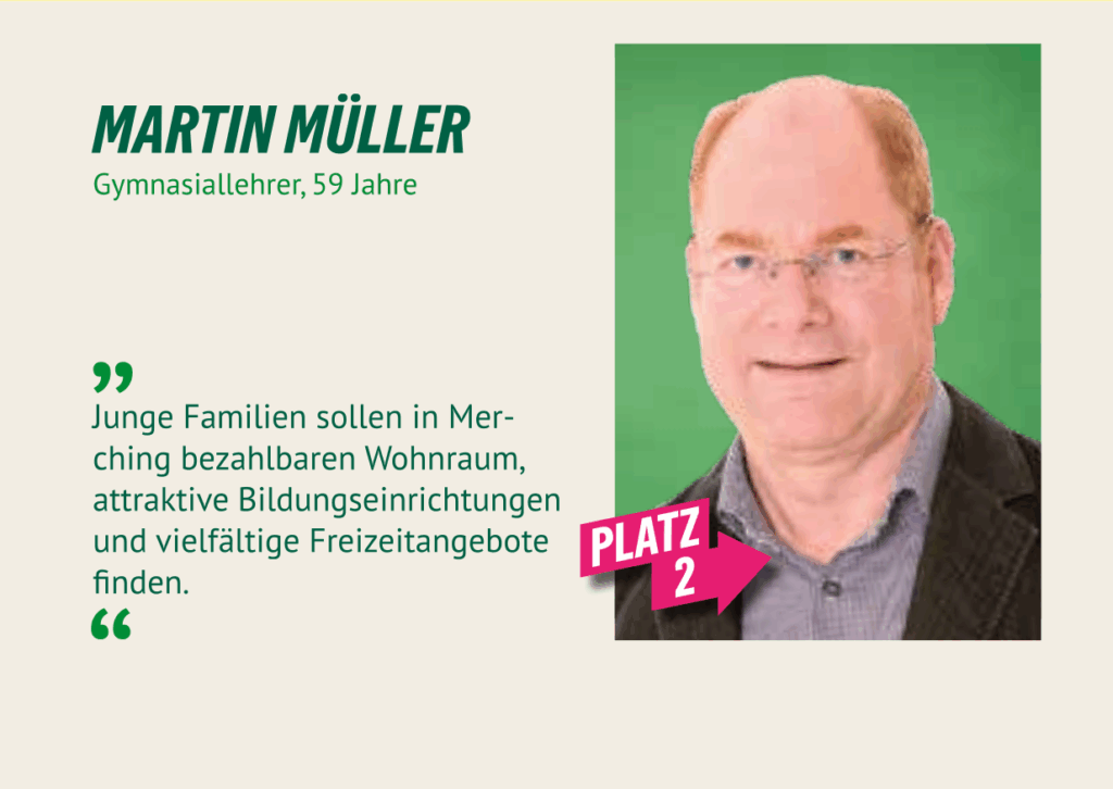 Viele von uns haben hier ihre Familien gegründet und Kinder großgezogen. Damit in Merching auch in Zukunft gutes Familienleben und eine glückliche Kindheit möglich ist, werden wir Maßnahmen zur Gewinnung erneuerbarer Energien und zur nachhaltigen Landwirtschaft fördern.